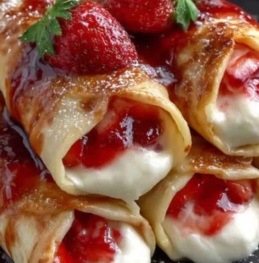 Mix cream cheese, powdered sugar, and vanilla until smooth. Spoon the mixture and strawberry filling onto tortillas, roll tightly, and secure. Fry or air fry at 375°F (190°C) until golden and crisp. Dust with powdered sugar or drizzle with chocolate if desired.